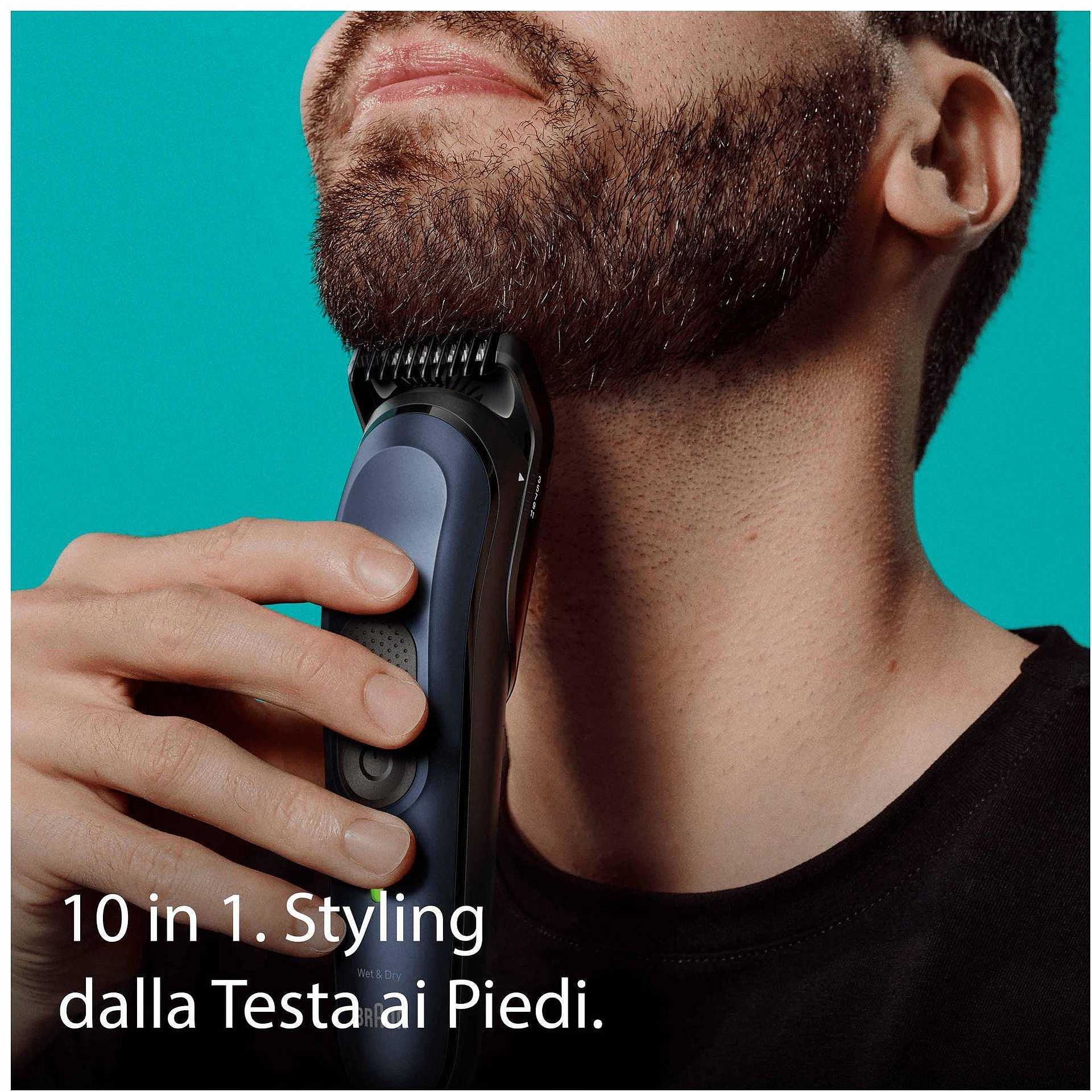- Kit per lo Styling Braun 10-in-1 per la rasatura dalla testa ai piedi: accessori studiati per la rifinitura di barba, orecchie e naso, tagliacapelli e depilazione maschile per tutto il corpo