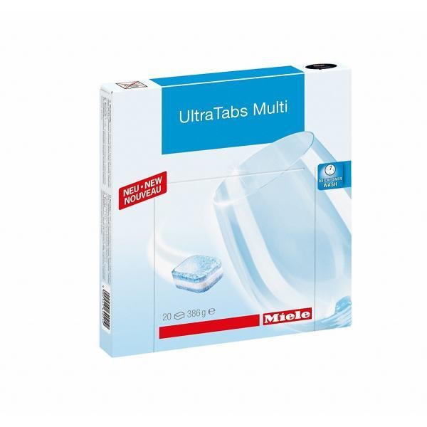 UltraTabs All in 1, 20 pz. per i migliori risultati di pulizia delle lavastoviglie Miele. Risultati brillanti, anche in caso di sporco ostinato.